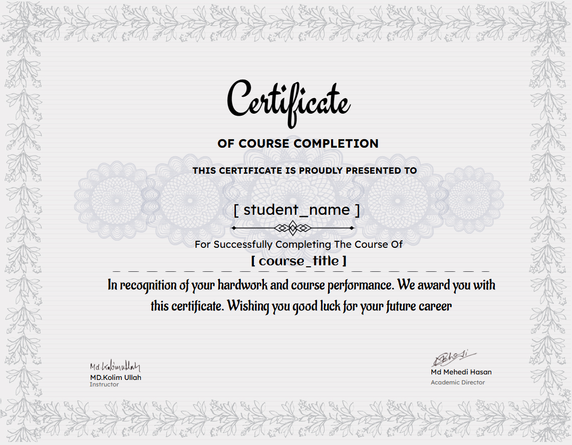 আমাদের কোর্সে থাকছে ইন্ডাস্ট্রি স্ট্যান্ডার্ড ডিজাইন মডিউল, যেখানে শেখানো হবে প্রফেশনাল লেভেলের লোগো ডিজাইন, ব্র্যান্ড আইডেন্টিটি, ভেক্টর ইলাস্ট্রেশন এবং ক্রিয়েটিভ ডিজাইন থিংকিং। শুধু টুলস জানা নয়, এখানে আপনি শিখবেন কীভাবে বাস্তব প্রজেক্টে সেই টুলস ব্যবহার করে আলাদা মানের কাজ তৈরি করা যায়। এই মডিউলে আপনি হাতে-কলমে প্র্যাকটিস করবেন রিয়েল ক্লায়েন্ট বেসড প্রজেক্ট, যা আপনাকে তৈরি করবে একজন চিন্তাশীল ও প্রফেশনাল ডিজাইনার।